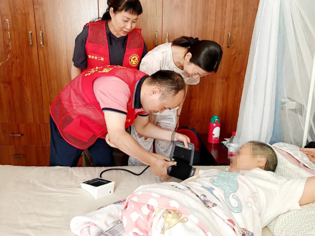 許阿姨患有心臟病、高血壓及腰椎疾病多年,天氣炎熱她的血壓一直不穩定,家屬通過微信群向科室副主任楊光咨詢。7月16日,楊光在了解此情況后,與李慧新主任商量,決定帶醫療團隊一起前往許阿姨家中,為她進行血壓測量、心臟聽診等檢查,對其日常生活中的注意事項進行了詳細的指導。同時,還對許阿姨的用藥方案和康復計劃進行了相應的調整。