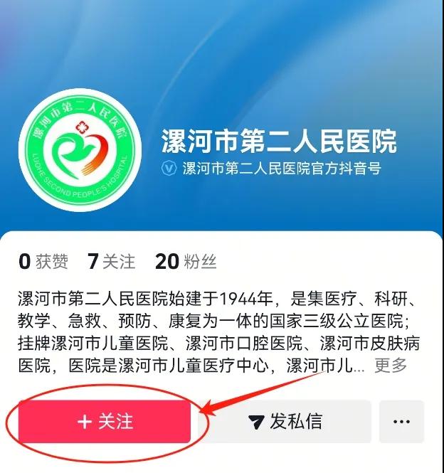 “漯河市第二人民醫院”官方抖音號開通啦!