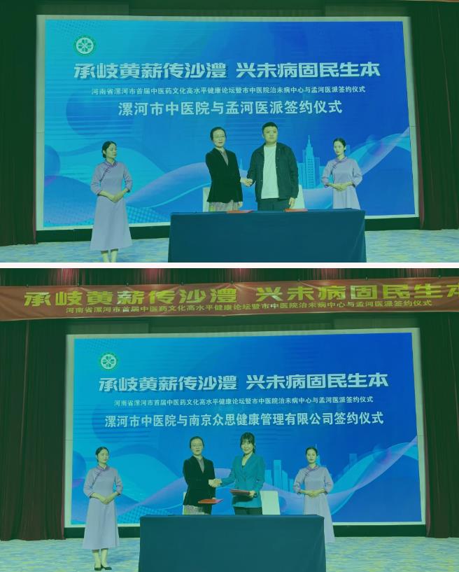核心簽約環節中,兩項重磅合作相繼落地:首先,楊軼書記代表漯河市中醫院與孟河醫派傳承人、北京健源三堂醫療科技有限公司CEO張國棟簽約,雙方將在人才培養、專科建設、治未病服務等領域深度協作,依托在建的中醫治未病中心,打造十大專病管理中心,讓孟河醫派學術精華在沙澧大地生根結果;緊接著,市中醫院再與南京眾思健康管理有限公司達成合作,楊軼書記與江蘇梵音健康管理有限公司董事長、南京眾思健康管理有限公司運營總監仉婷簽約,雙方將圍繞母嬰養護中心建設、產褥期中醫膳食營養等方向展開合作,進一步豐富漯河中醫藥服務內涵。