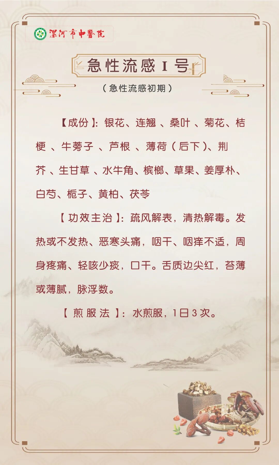 根據(jù)河南省疾控中心傳染病及相關(guān)健康危險因素監(jiān)測數(shù)據(jù),漯河市中醫(yī)院積極組織專家對近期流感防治工作進行綜合研判,充分發(fā)揮中醫(yī)藥特色優(yōu)勢,科學規(guī)范開展中醫(yī)藥防治流感工作,現(xiàn)將中醫(yī)藥防治流感方劑予以公布: