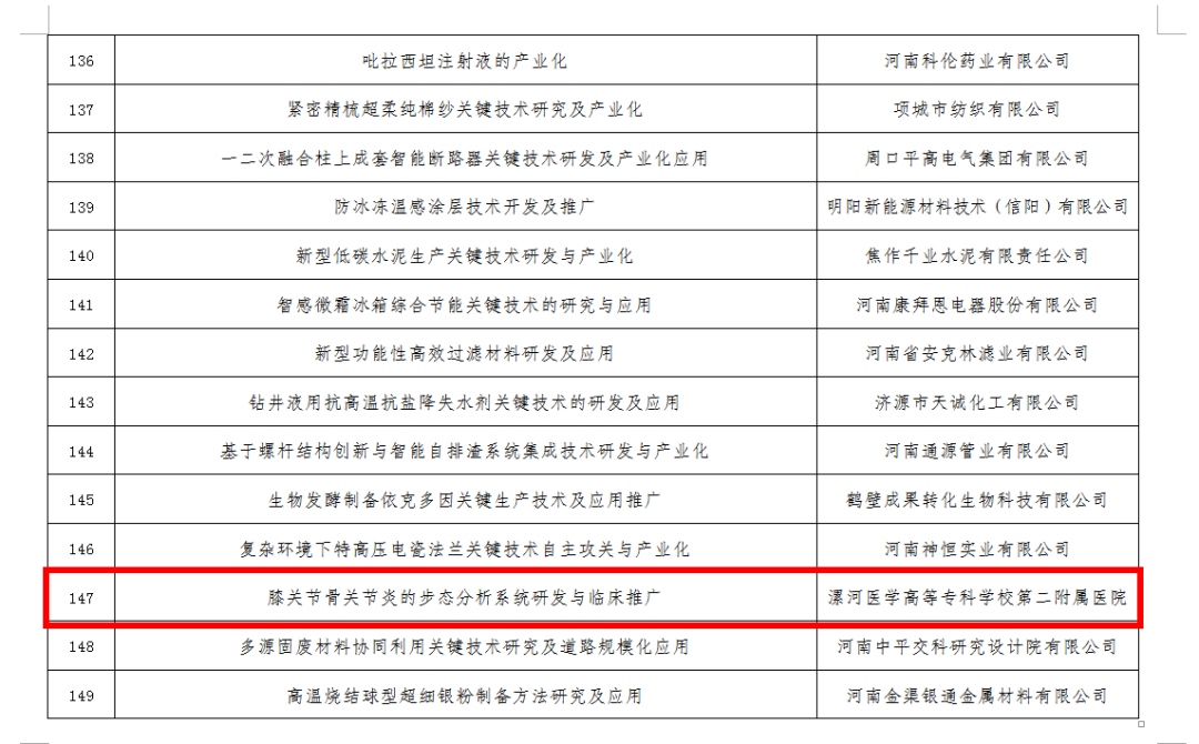 近日,河南省科學技術廳公示了2025年度河南省中央引導地方科技發展資金擬支持項目清單,由漯河醫專二附院(漯河市骨科醫院、漯河市立醫院)申報的“膝關節骨關節炎的步態分析系統研發與臨床推廣”項目成功入選。