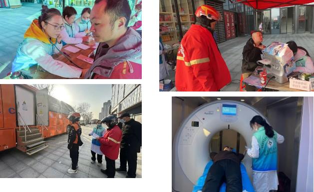 在紀委書記劉國鋒的帶領下,來自內科、超聲科、醫學影像科等科室的骨干醫護組建專項志愿者團隊,針對外賣小哥長期騎行、作息不規律的職業特性,定制了“高效精準”的健康篩查方案——不僅涵蓋心電圖、甲狀腺彩超、血壓檢測、骨密度檢測等基礎項目,更調配院內先進移動CT車進駐,讓小哥無需中斷工作,利用送餐間隙就能完成全方位健康評估。