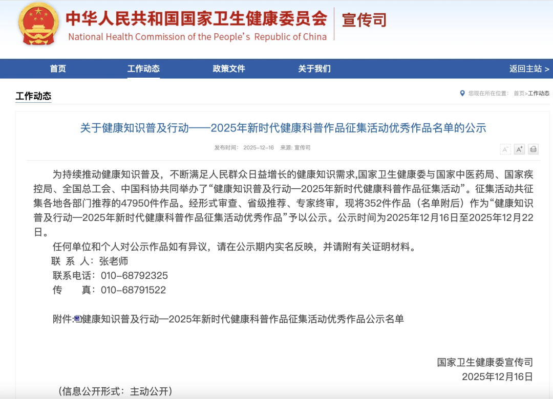 近日,由國家衛(wèi)生健康委與國家中醫(yī)藥局、國家疾控局、全國總工會、中國科協(xié)共同舉辦了“健康知識普及行動--2025 年新時代健康科普作品征集活動”。經(jīng)形式審查、省級推薦、專家終審,市中醫(yī)院包亞沖、朱曉晴、李靜、劉俊杰團隊精心創(chuàng)作的健康科普作品《新中式女子四季養(yǎng)生》,從全國近5萬部參賽作品中脫穎而出,斬獲國家級“優(yōu)秀作品”獎,成為本次大賽中漯河市唯一獲此國家級殊榮的作品。