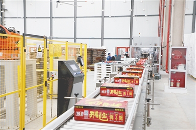 在不遠處的河南鹽津鋪子食品有限公司生產基地,一條條全自動生產線上,全新包裝的薯片、鵪鶉蛋正源源不斷地快速輸送。廠房隔壁,公司二期項目正在火熱施工。“我們現在是一邊滿產運行,一邊加快二期北方區域物流中心和肉脯生產線項目建設。”該公司行政負責人薛明指著公司項目規劃圖介紹,按照公司“一基地兩中心”發展規劃,明年將啟動三期建設。