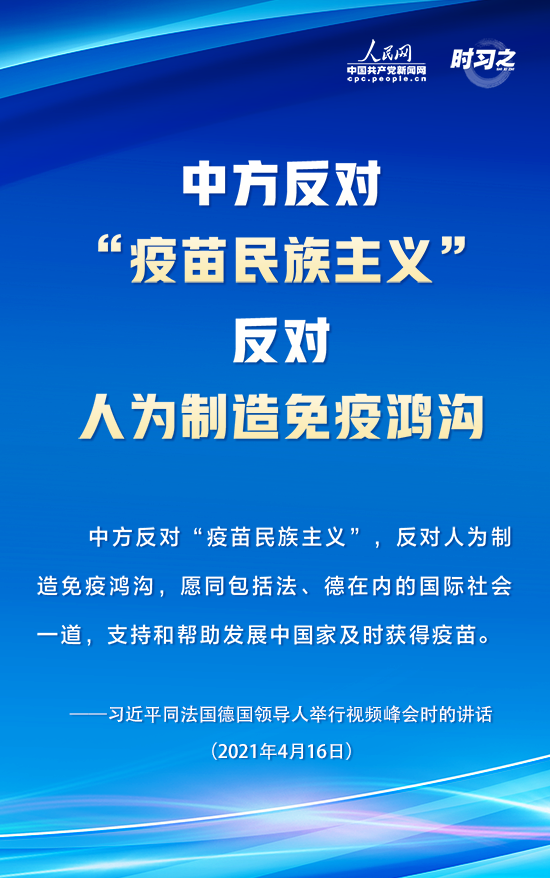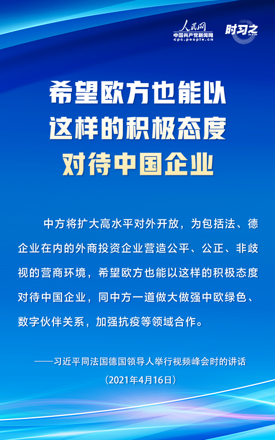 4月16日下午,國家主席習近平在北京同法國總統馬克龍、德國總理默克爾舉行中法德領導人視頻峰會。三國領導人就合作應對氣候變化、中歐關系、抗疫合作以及重大國際和地區問題深入交換意見。人民網·中國共產黨新聞網“時習之”欄目摘錄了習近平在這次視頻峰會上的重要講話內容,一起學習。