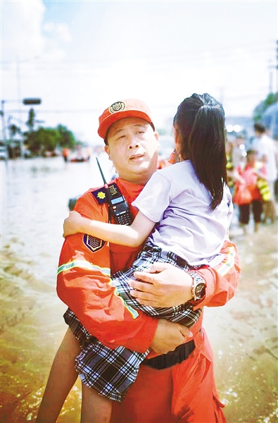 2021年,信天游在新鄉抗洪救災,救助受困孩子。受訪者供圖