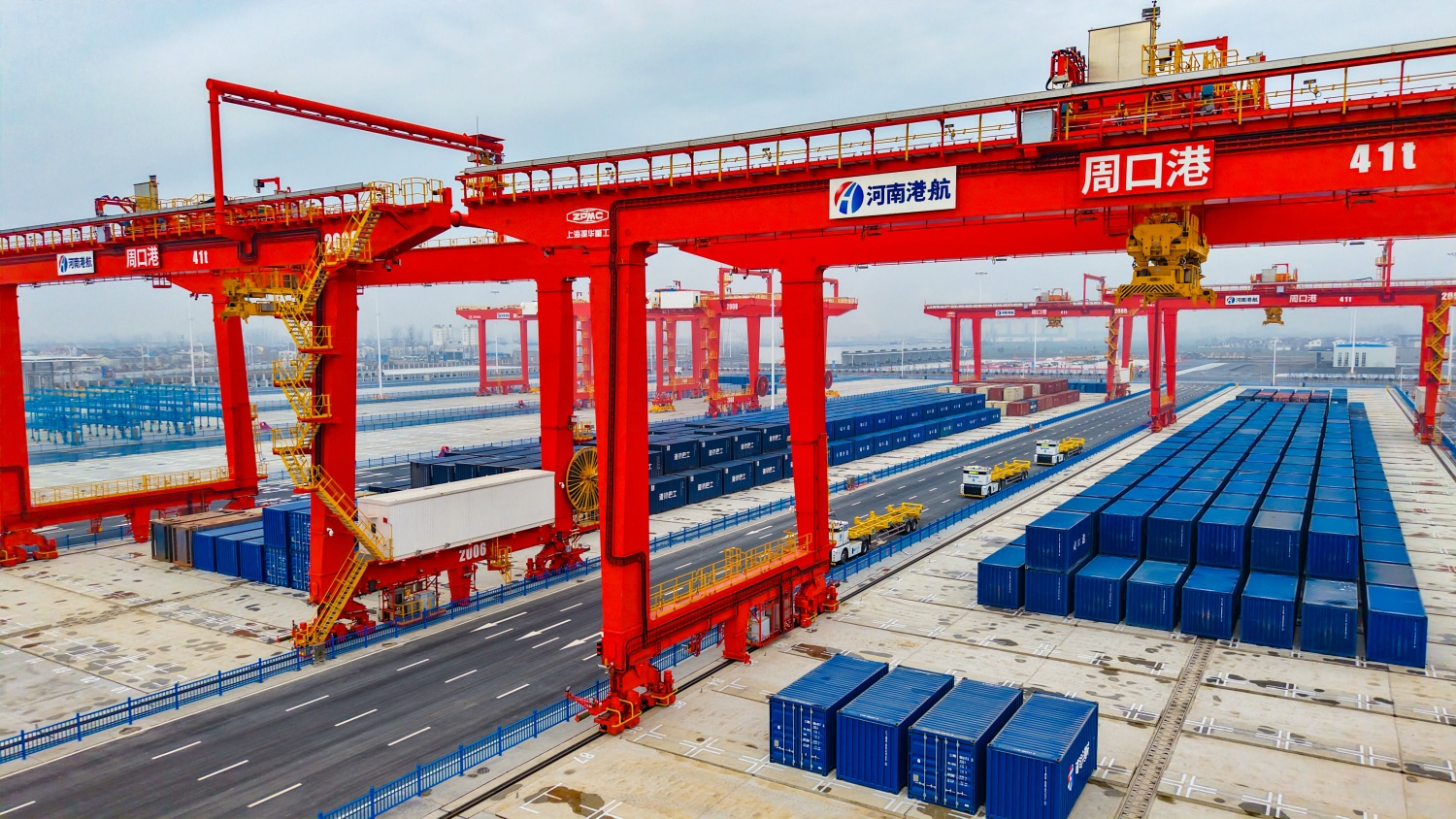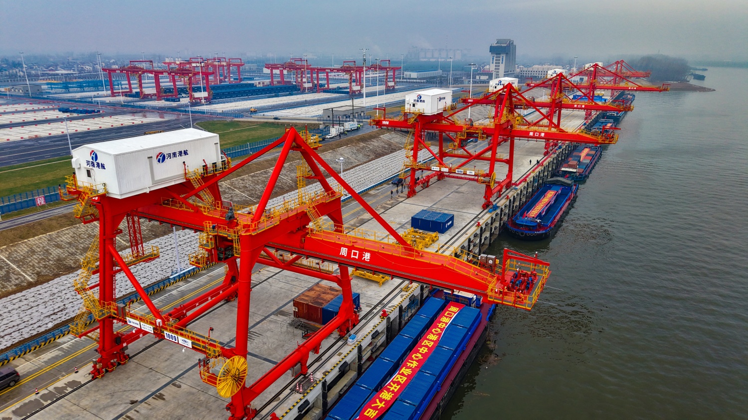 周口港中心港區(qū)中心作業(yè)區(qū)(一期)項(xiàng)目位于河南省周口市商水縣沙潁河南岸,是河南省首個(gè)百萬(wàn)級(jí)專用集裝箱碼頭定位的高標(biāo)準(zhǔn)港口項(xiàng)目,占地2061畝,規(guī)劃建設(shè)13個(gè)2000噸級(jí)集裝箱泊位,一期開(kāi)港先行投用6個(gè)泊位。