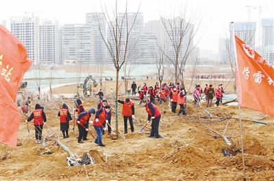 2月22日,我市開(kāi)展春季義務(wù)植樹(shù)活動(dòng)。圖為沙澧河二期綜合整治項(xiàng)目基地植樹(shù)現(xiàn)場(chǎng)。