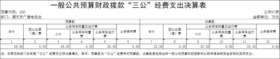 2020年度“三公”經(jīng)費(fèi)財(cái)政撥款支出決算中,因公出國(境)費(fèi)支出決算0萬元;公務(wù)用車購置及運(yùn)行費(fèi)支出決算25.38萬元,完成預(yù)算的97.62%,占100.0%;公務(wù)接待費(fèi)支出決算0.00萬元。具體情況如下: