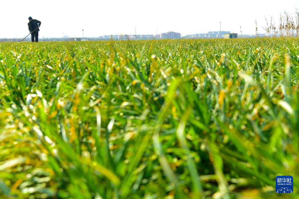 2月9日,山東省棗莊市山亭區城頭鎮徐洼村農民在麥田勞作。