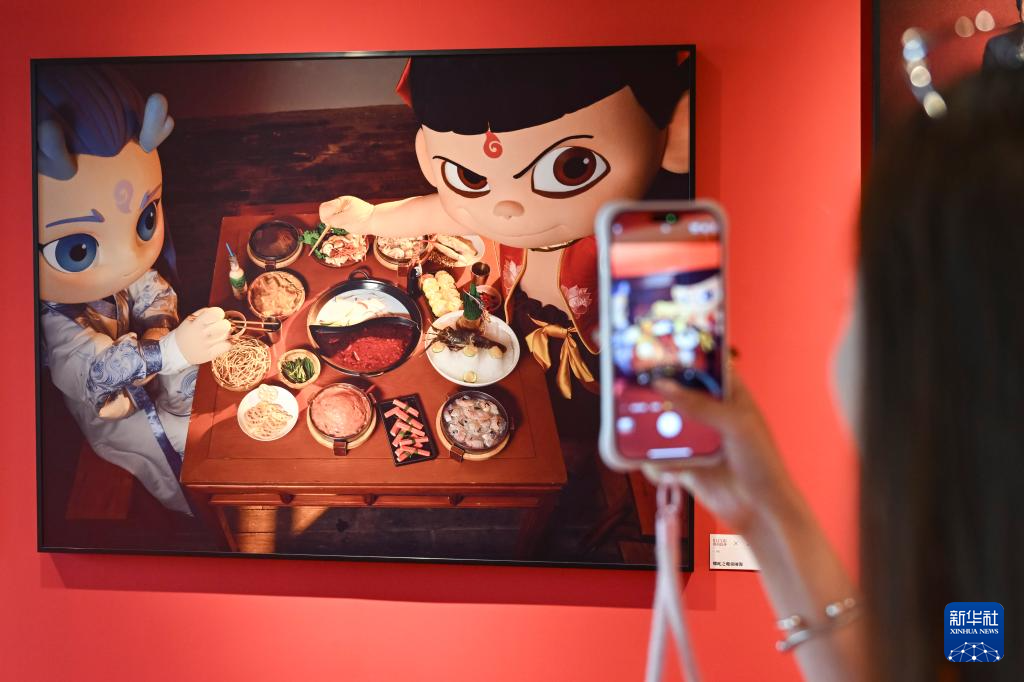 6月14日,觀眾在電影藝術(shù)展上拍攝展品。