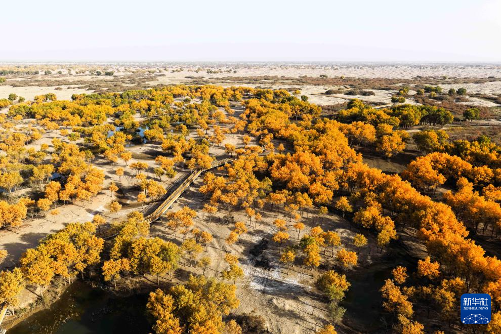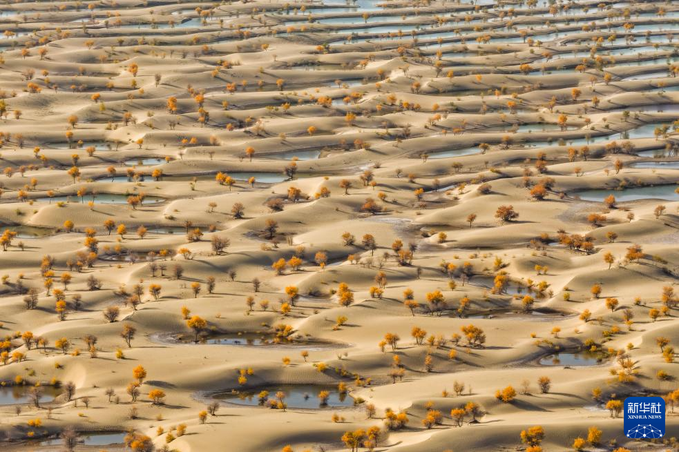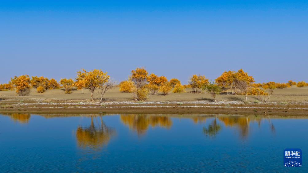 時下,新疆和田地區的胡楊迎來最佳觀賞期,成片換妝的胡楊林與水天相映,共繪金秋美景。