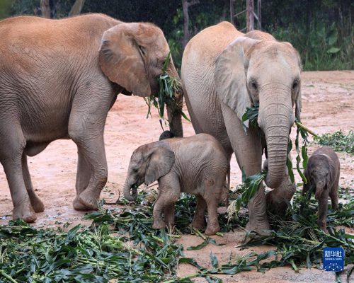 廣東清遠長隆成功繁育五頭非洲象