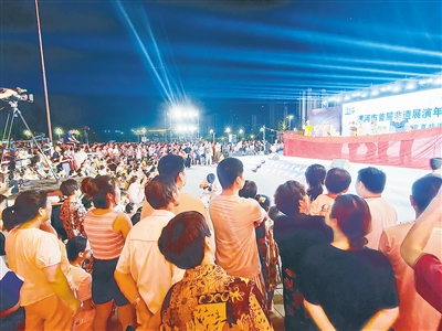 現(xiàn)場千余名觀眾把舞臺(tái)圍了個(gè)里三層外三層,大家都被木偶戲所吸引。“漯河還有表演木偶戲的?之前我沒有聽說過,今天是第一次見。這些傳統(tǒng)藝術(shù)實(shí)在是太稀罕了!”觀眾李女士告訴記者,“帶孩子來看非遺表演,就是想讓他知道,我們的傳統(tǒng)藝術(shù)是多么值得驕傲。”